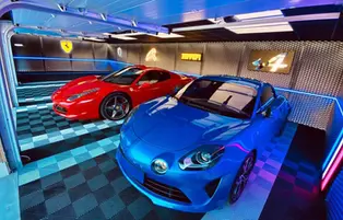 A two-car garage of approximately 80m² in the Paris region. Ready to house these two beauties: an Italian car and a French sports car.