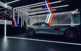 Here is a 20m² garage in the Paris region, a pure marvel! Equipped with Star Wars LEDs and a starry sky, this garage perfectly complements this magnificent M5 competition.