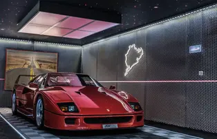 From a very dilapidated garage to a splendid setting! This garage is ready to welcome this wonderful American car. The smart lighting and paddock ambiance work wonders!